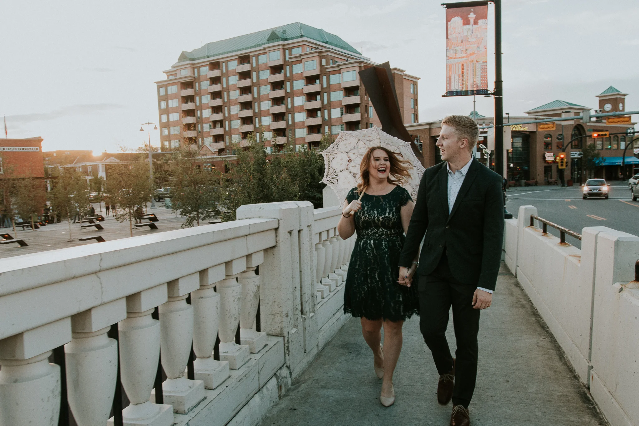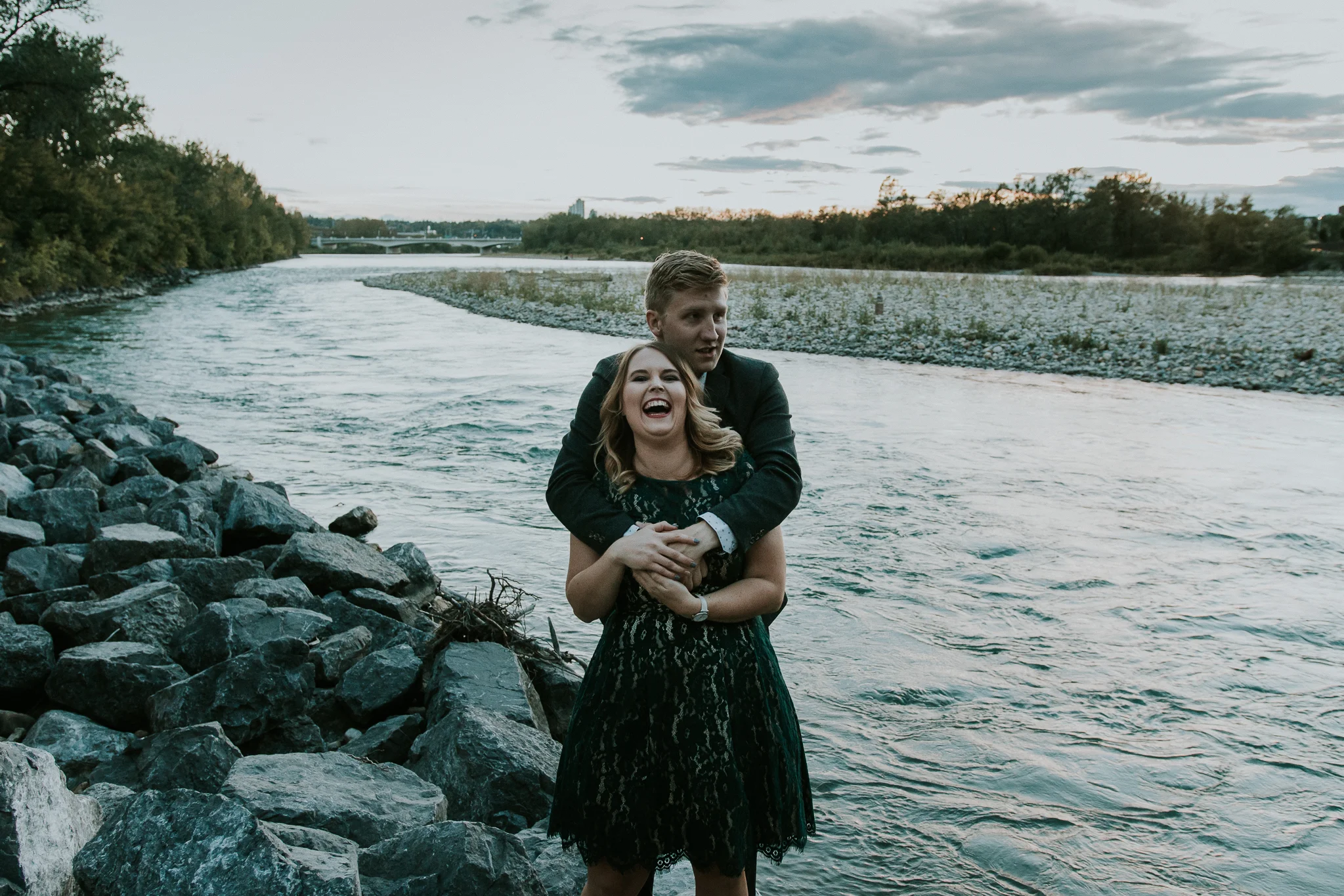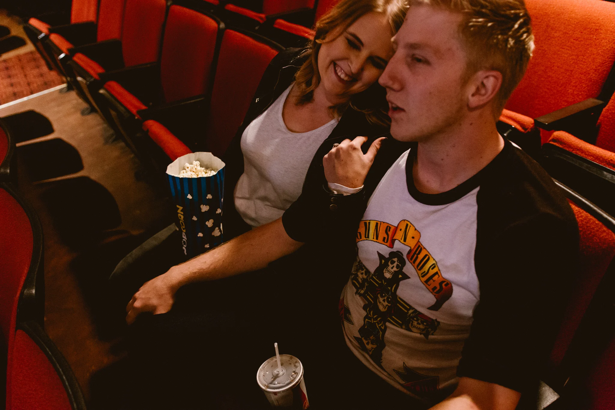 I love when couples have creative ideas for sessions! It gets me so excited to shoot somewhere that means something to them and is unique for me. Lindsay & Alex both have a love of movies and theatre so when we started planning their engagement session I was thrilled when they suggested the Plaza theatre in Kensington! We had a blast hanging out in the empty theatre, throwing popcorn and drinking soda. Afterwards we came outside to find ourselves in golden hour and wandered down to the river for a few more dressed up shots. I can't wait to shoot the mountain wedding of these two in Kananaskis next July!!