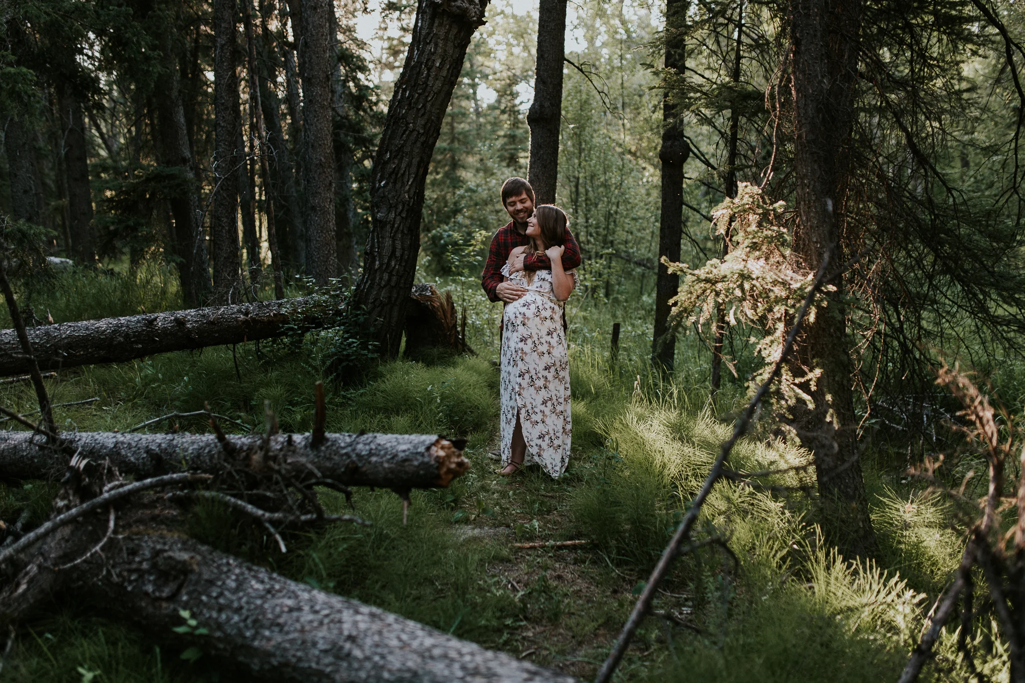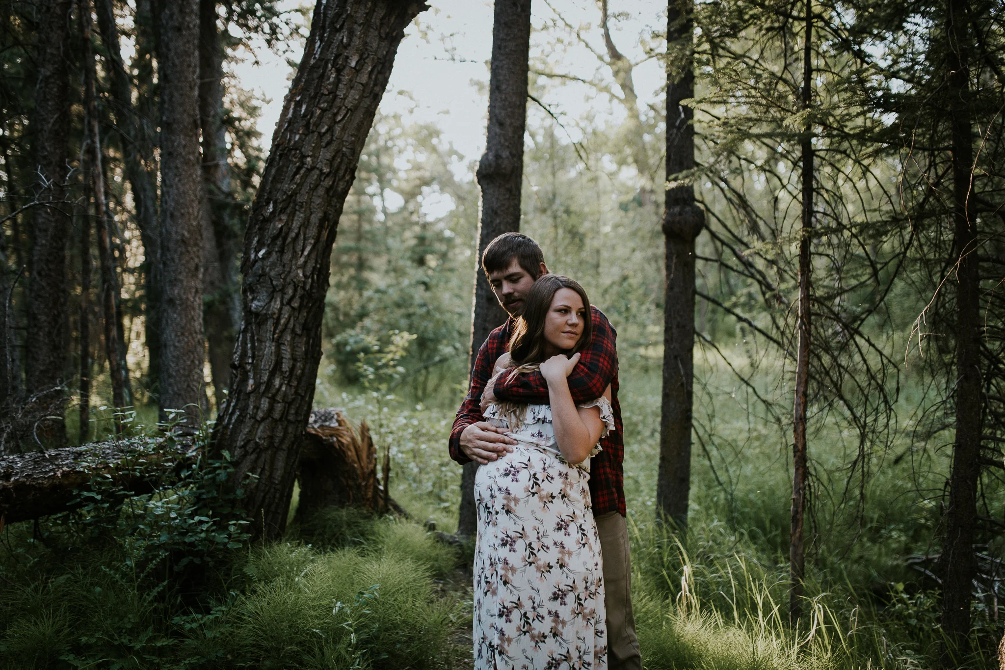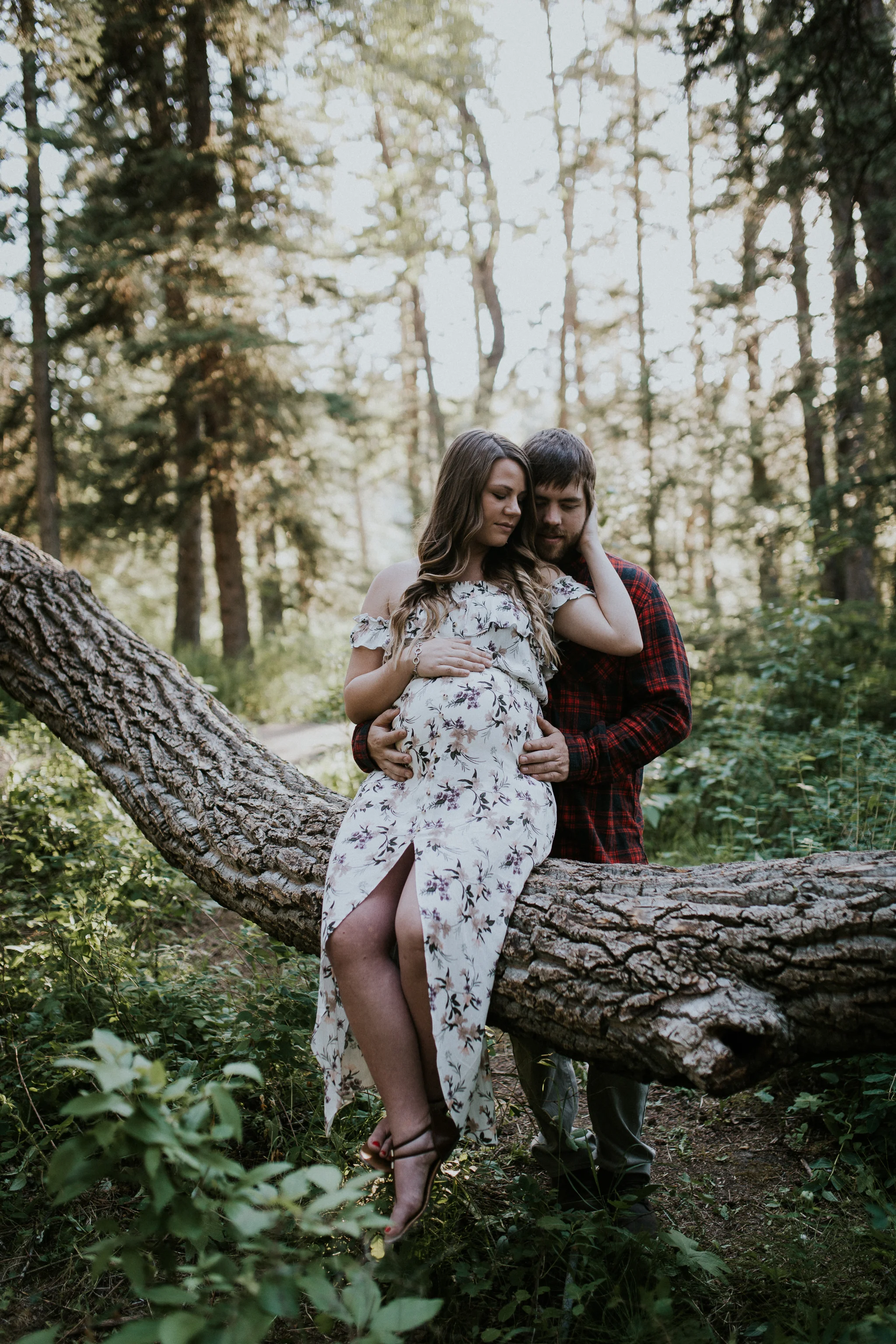 Amber & Joel were a little nervous about their maternity session when they met me in Bebo Grove, my favourite part of Fish Creek Park in Calgary. But they were honestly naturals in front of the camera. I would ask them to cuddle up or snuggle into each other and they would come up with the most beautiful poses! Amber came armed with a beautiful white dress that was perfect for the forested location. And when we got outside to do some shots near the creek I got her to put on one of my personal closet gowns and it looked absolutely stunning on her.