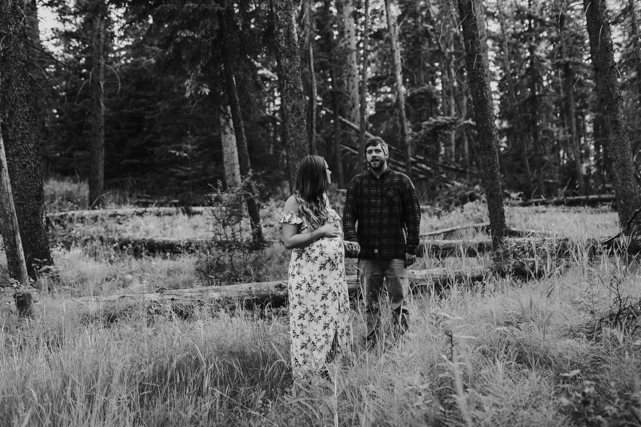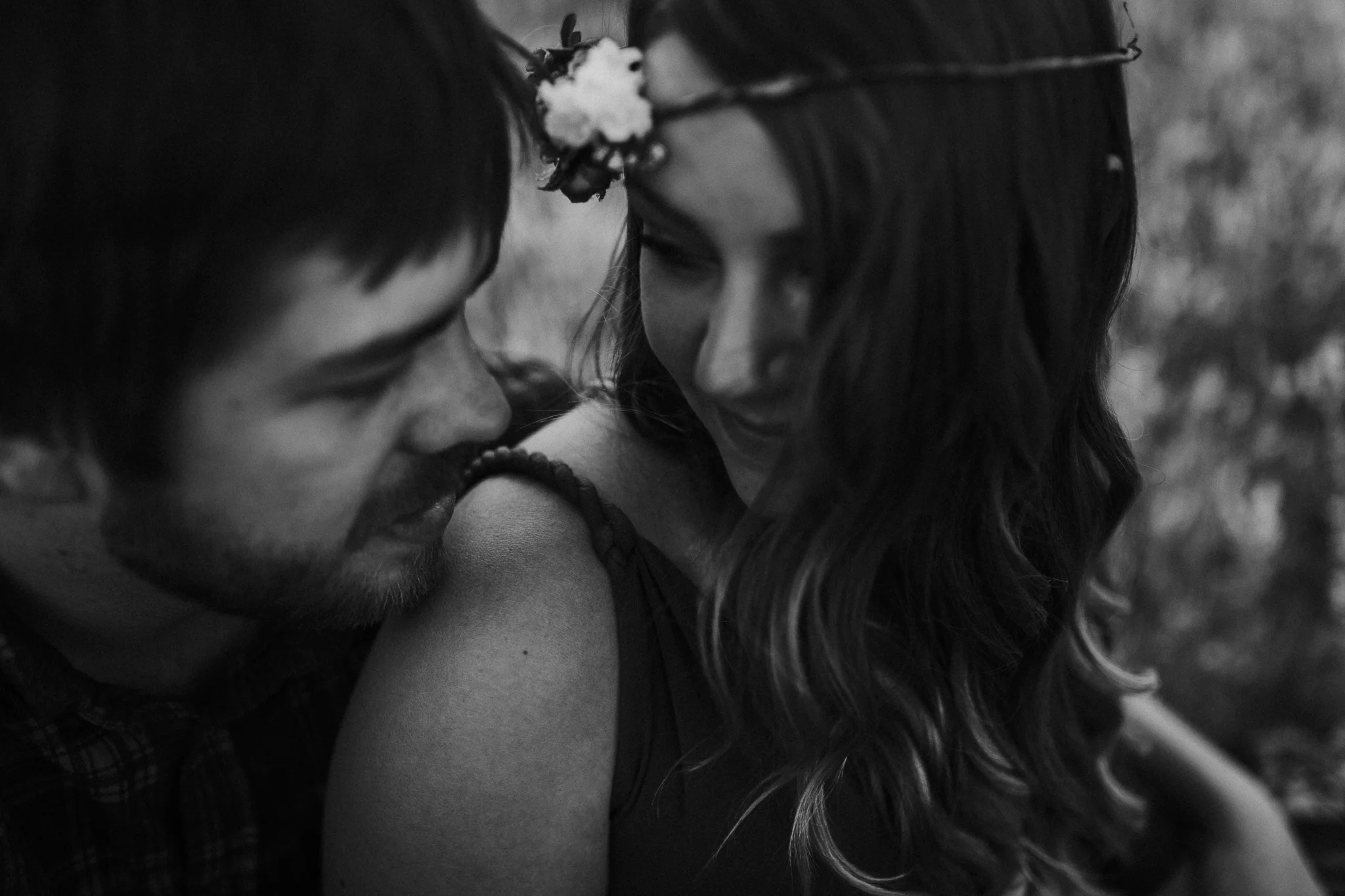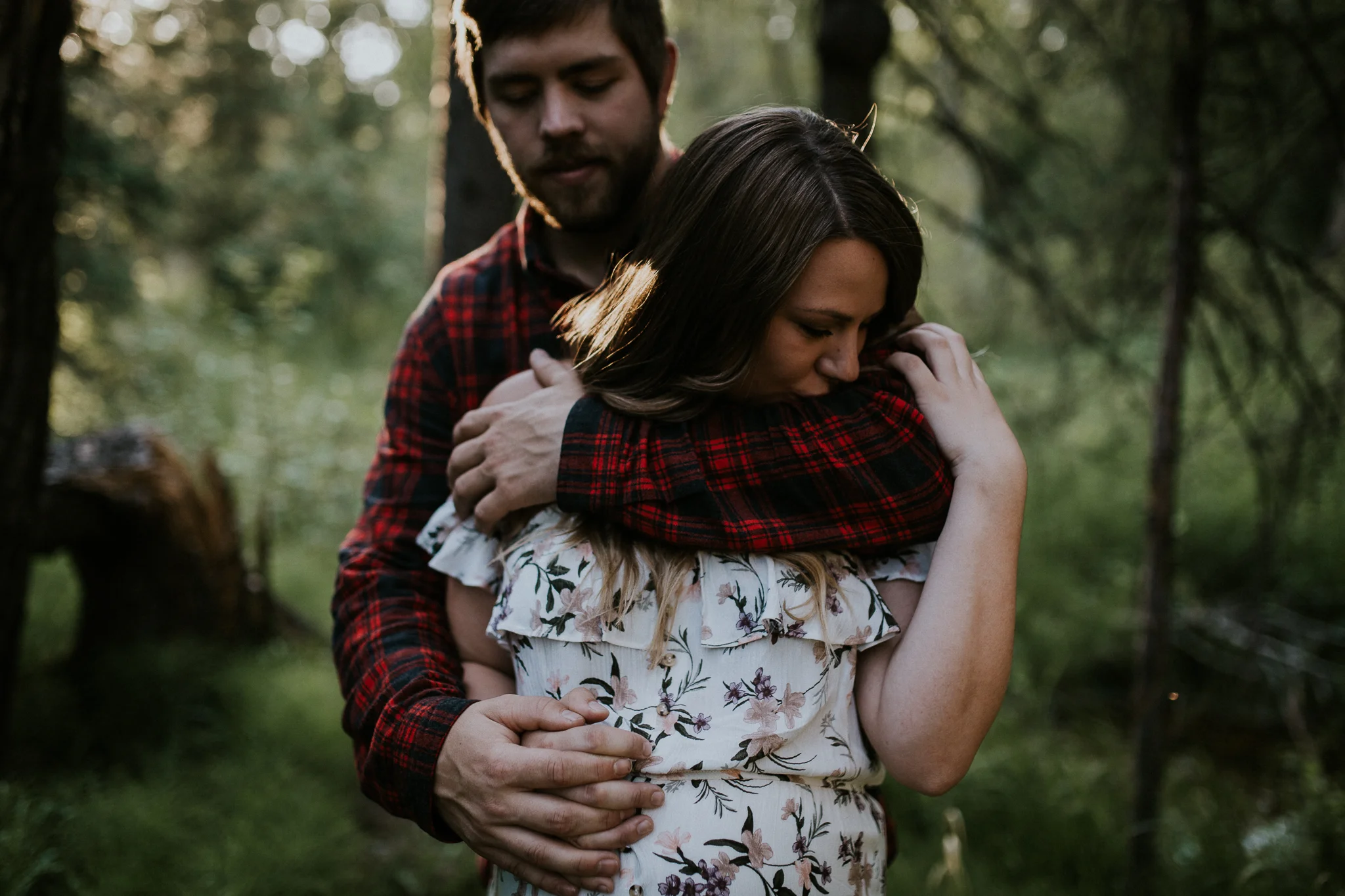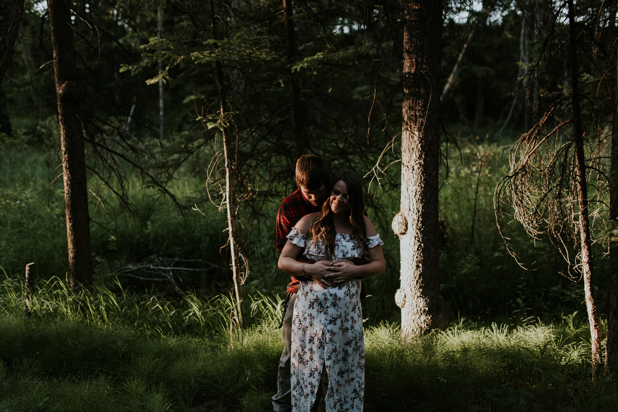 Amber & Joel were a little nervous about their maternity session when they met me in Bebo Grove, my favourite part of Fish Creek Park in Calgary. But they were honestly naturals in front of the camera. I would ask them to cuddle up or snuggle into each other and they would come up with the most beautiful poses! Amber came armed with a beautiful white dress that was perfect for the forested location. And when we got outside to do some shots near the creek I got her to put on one of my personal closet gowns and it looked absolutely stunning on her.