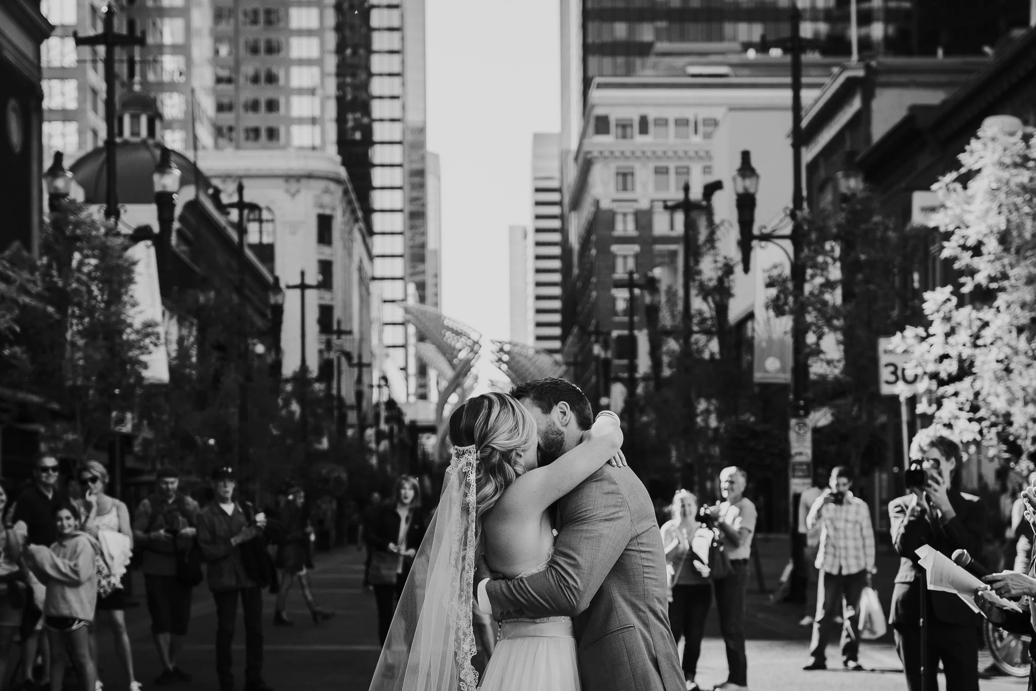 Steve and Lindsay's urban downtown Calgary wedding on Stephen Ave was one of a kind and it absolutely changed the way I view urban weddings. It was the first wedding in Calgary to happen on Stephen Ave and I was honoured to photograph it. Now I see urban weddings as a way to play with textures and light. I see them as an opportunity to capture beauty in a place that might not be immediately seen as beautiful. I see them for their inherently human design... and I love to photograph human connection within them.