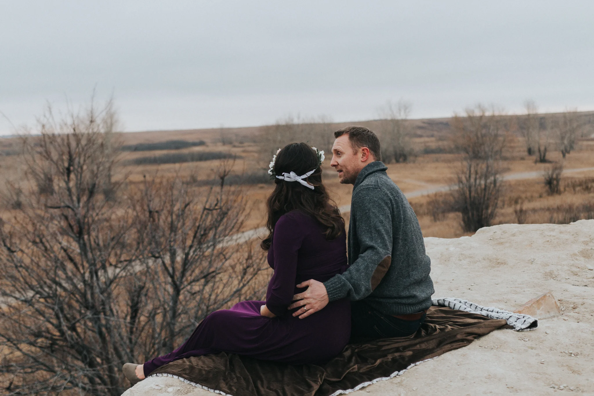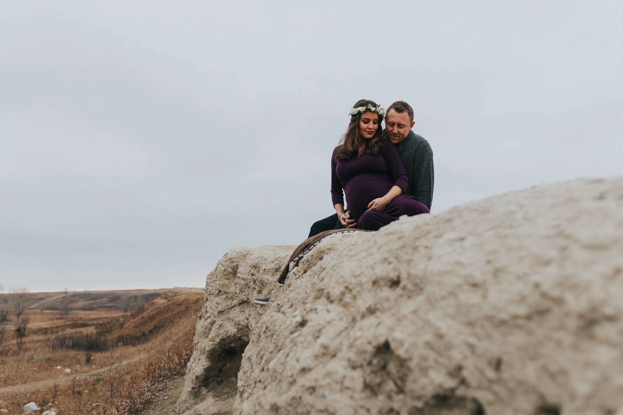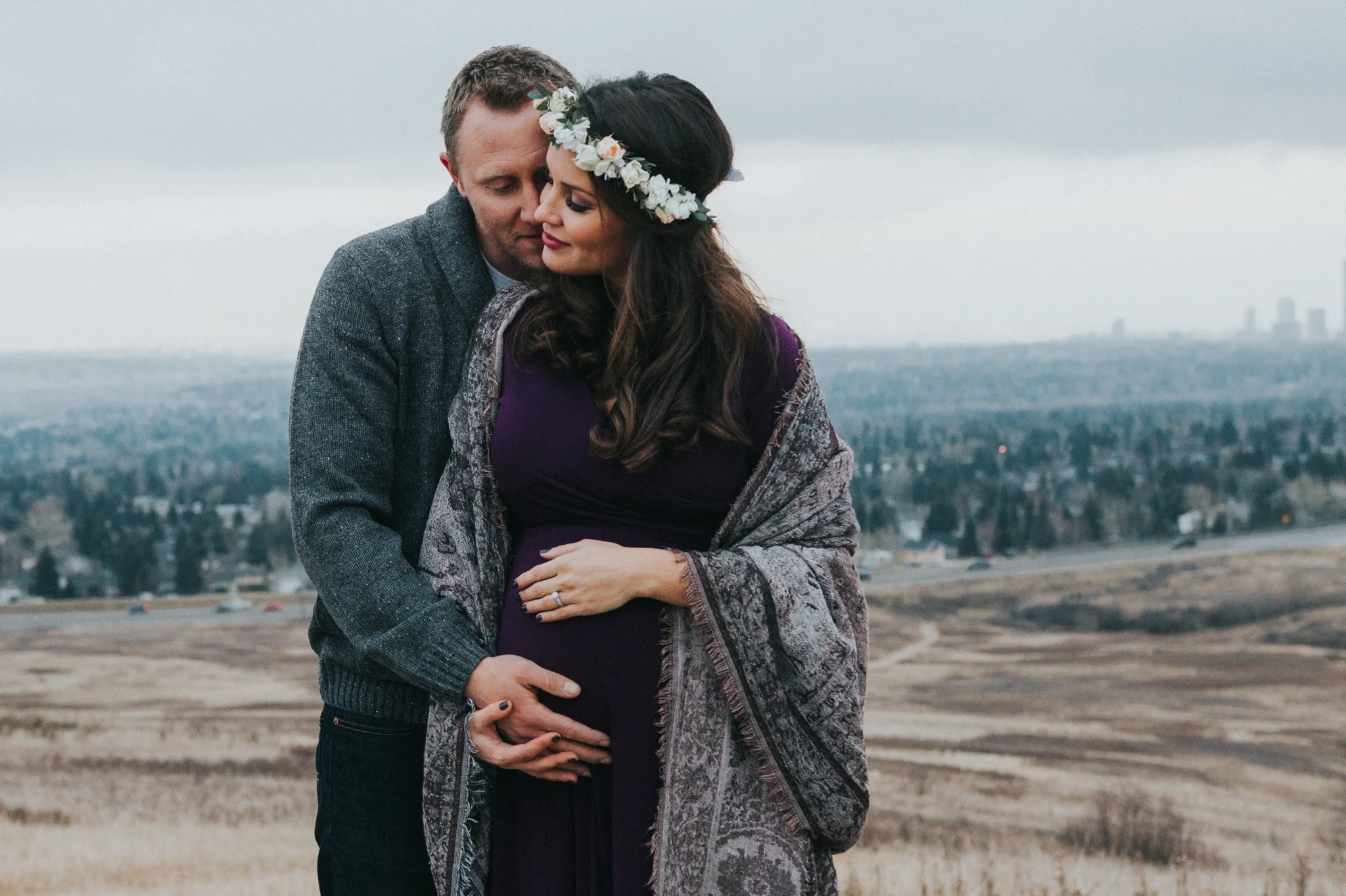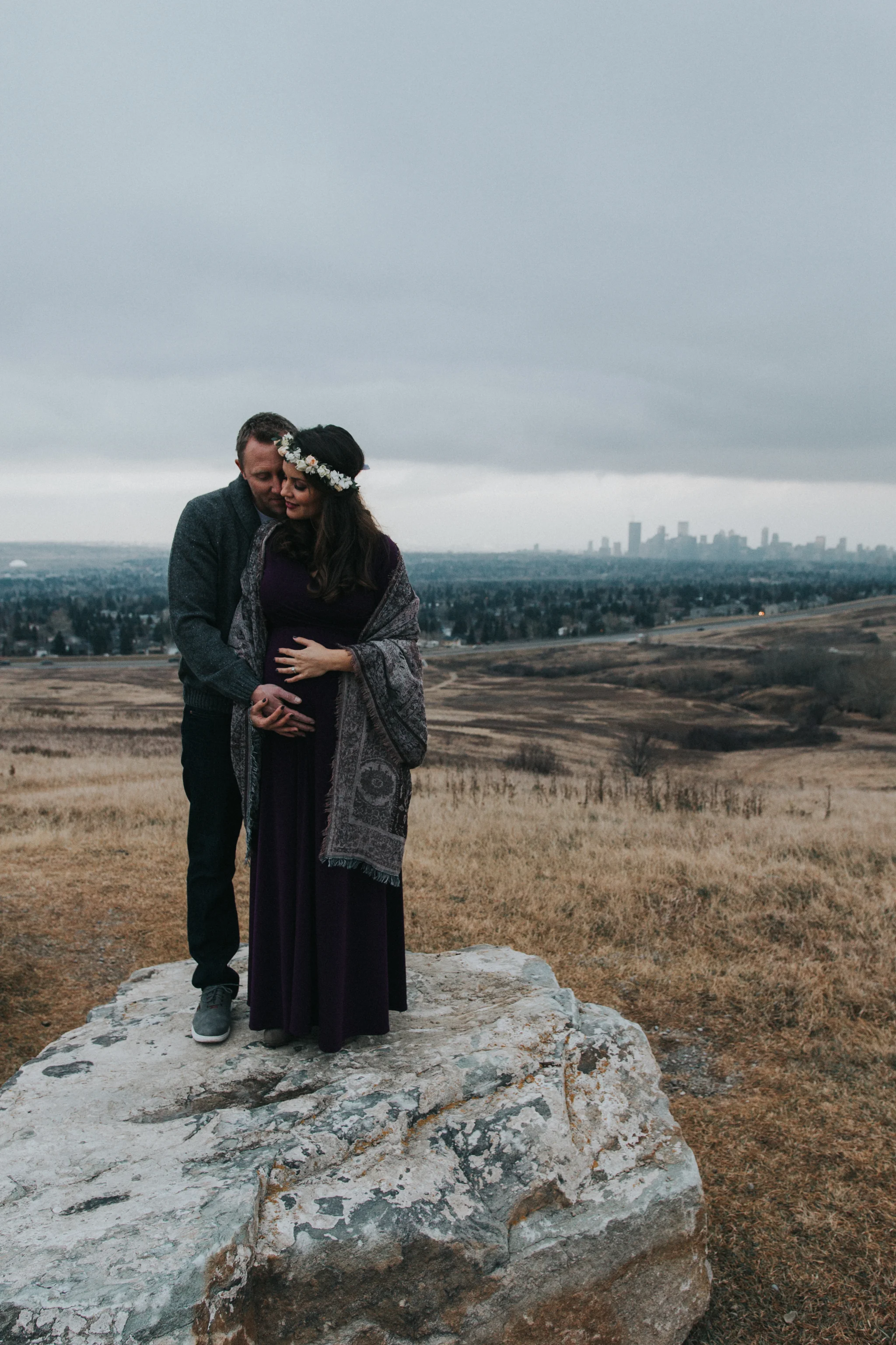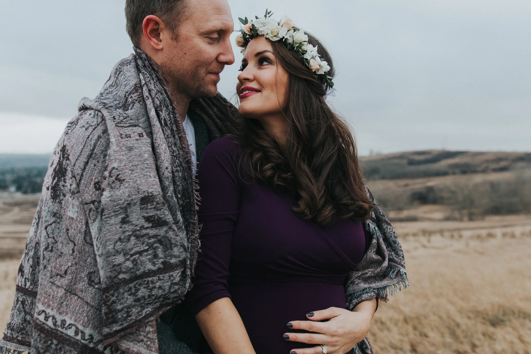 Can I just say how much I love connecting with people through photography? I am constantly meeting amazing people through my art and it makes me feel like one of the lucky ones. Chantelle and I connected from the very start. She was so enthusiastic and excited about our session from the minute we started talking. I'm so thankful for clients who ask for my ins-put (I just made that word up... ins-put=inspirational-input? It kind of works?) when we're planning their shoot. From the flower crown, to the purple dress, to picking our location, everything went so smoothly from the start with Chantelle and she's quickly become one of my biggest supporters, which is something I'm beyond thankful for. Meeting someone who so genuinely believes in me really gave me the confidence to create what I think is some of my best work. Add to that the fact that these two trooped it out in Nose Hill Park during one of the coldest spells we've had so far this winter and well, I've become their biggest fans as well! I can't wait until the New Year when I get to meet the entire family!