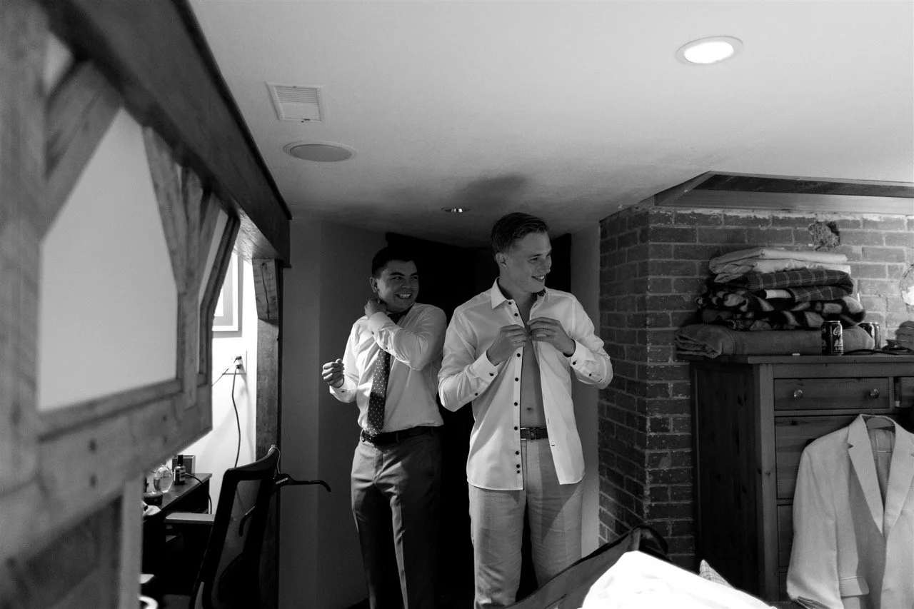 This slow, intentional start gave everyone a chance to ease into the day, and it allowed Gabe & Alex to enjoy some quiet moments before the festivities began. The presence of their dogs added an extra layer of sweetness, reminding us all of the love and life they bring to their home and now to their wedding day.