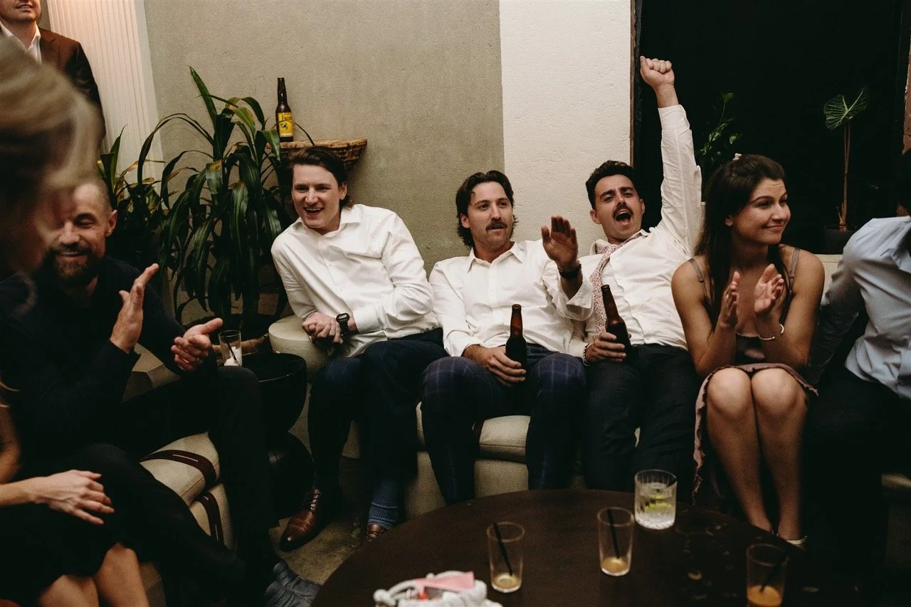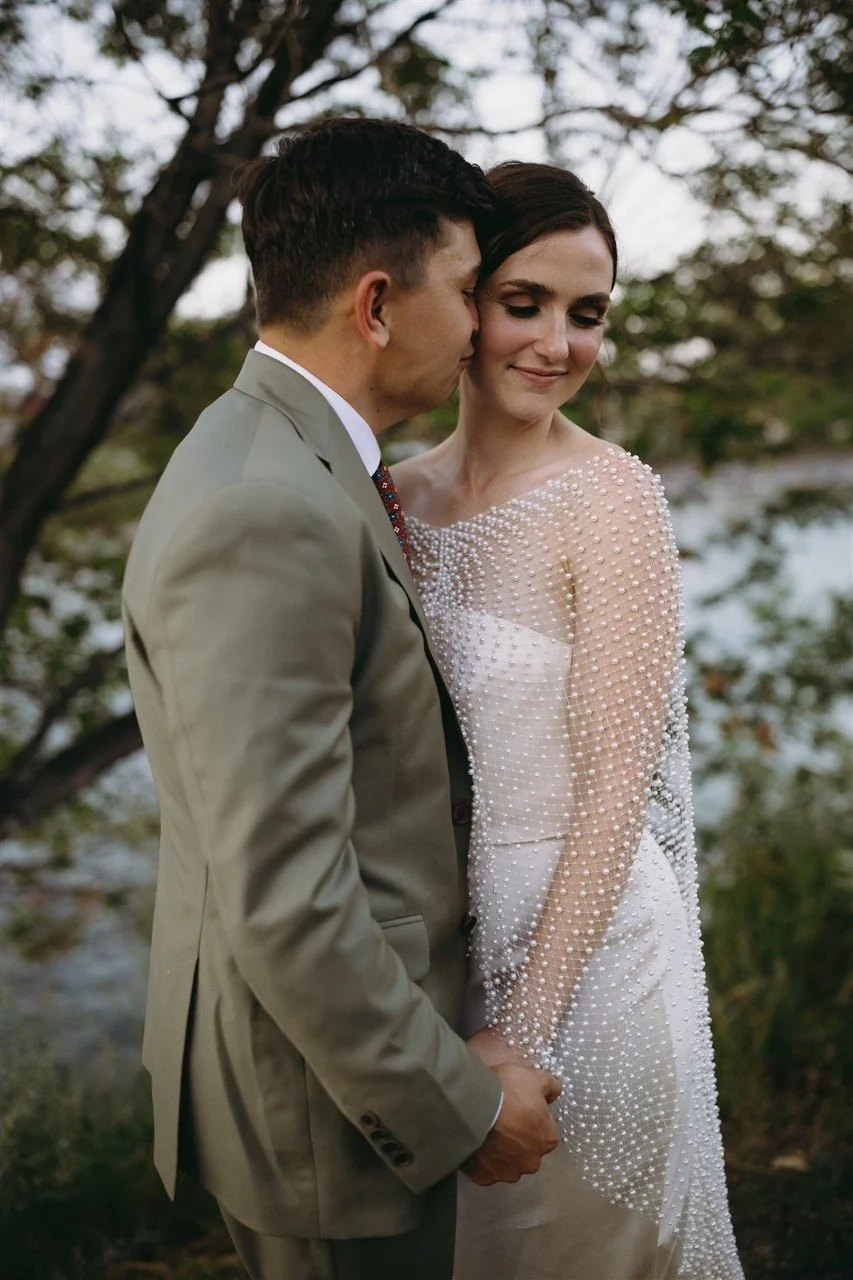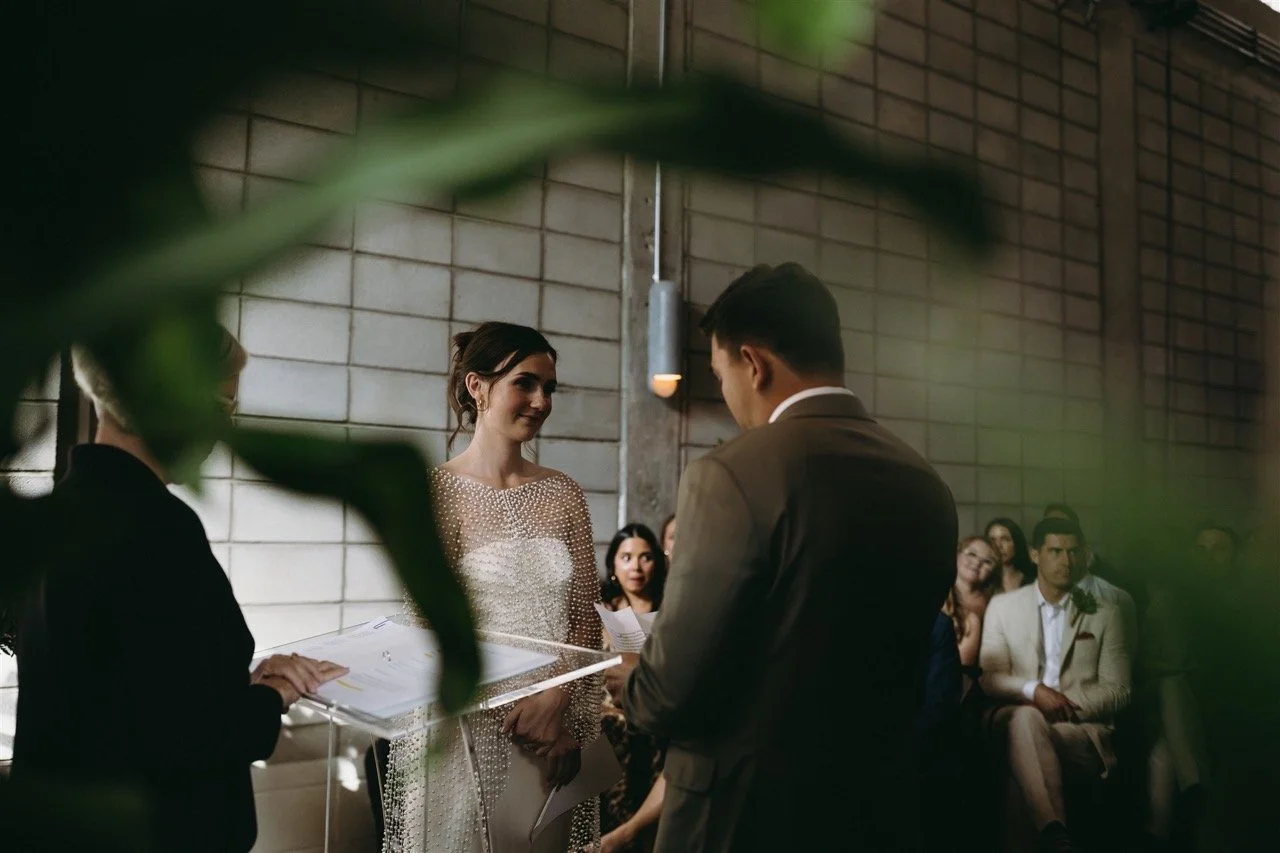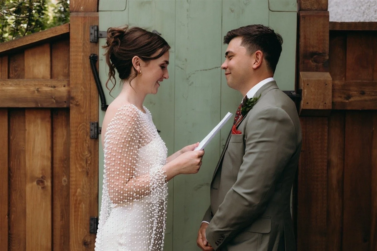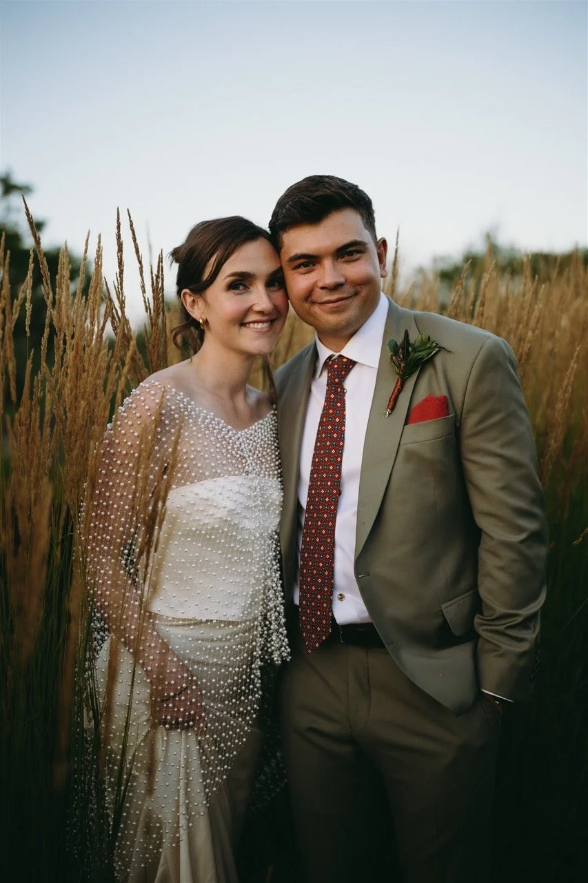 The day began at Gabe & Alex’s home, surrounded by their closest friends and three beloved dogs, setting the tone for a warm, connected celebration. Each friend played a role in making sure everything was perfect, from helping Alex with his suit and tie to assisting Gabe with her stunning pearl cape. (As a wedding photographer, I’m not shy to admit I was internally screaming with excitement photographing that cape—it’s one of my favorite accessories I’ve seen in years!)