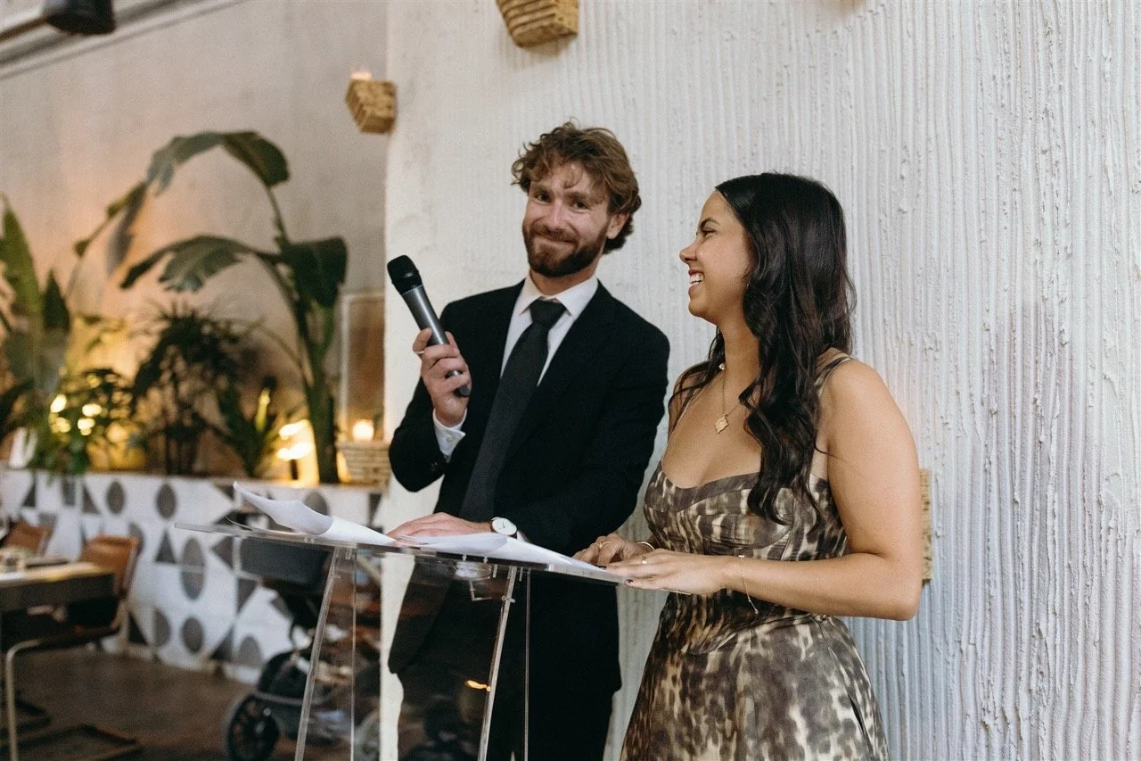 For Gabe & Alex’s wedding, the flow of the space was ideal for moving between the ceremony, cocktail hour, and reception, each with its own distinct feel. The beautiful patio with string lights was a highlight, providing a cozy, romantic space for guests to gather and enjoy the evening. And the staff at Fortuna's Row were incredible—attentive, on-point, and ready to keep everything running smoothly so that everyone could stay focused on enjoying the moment.