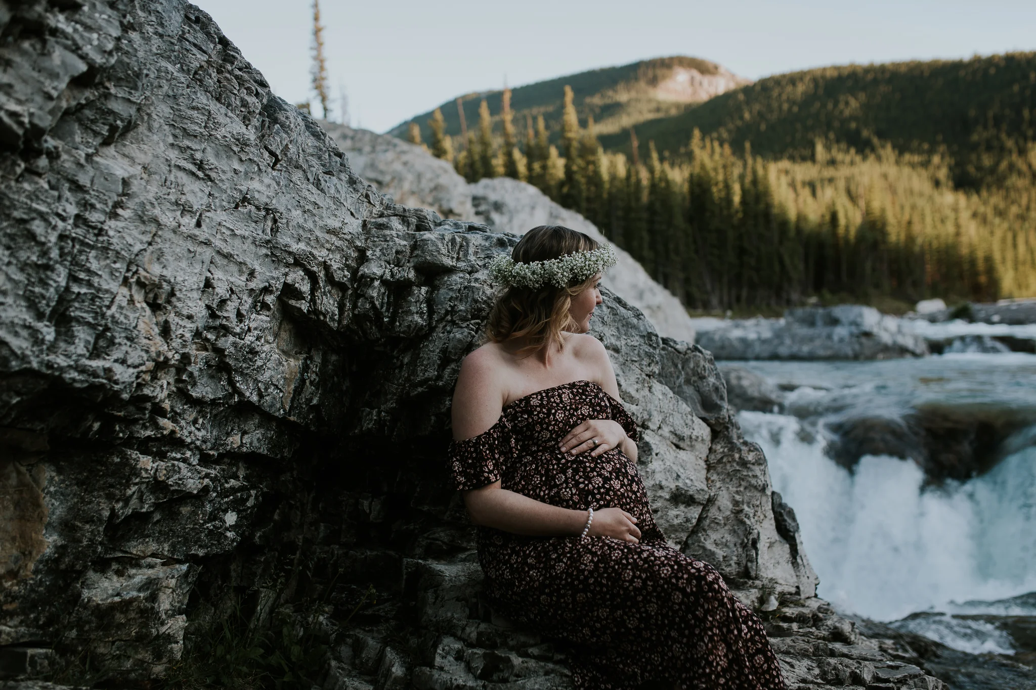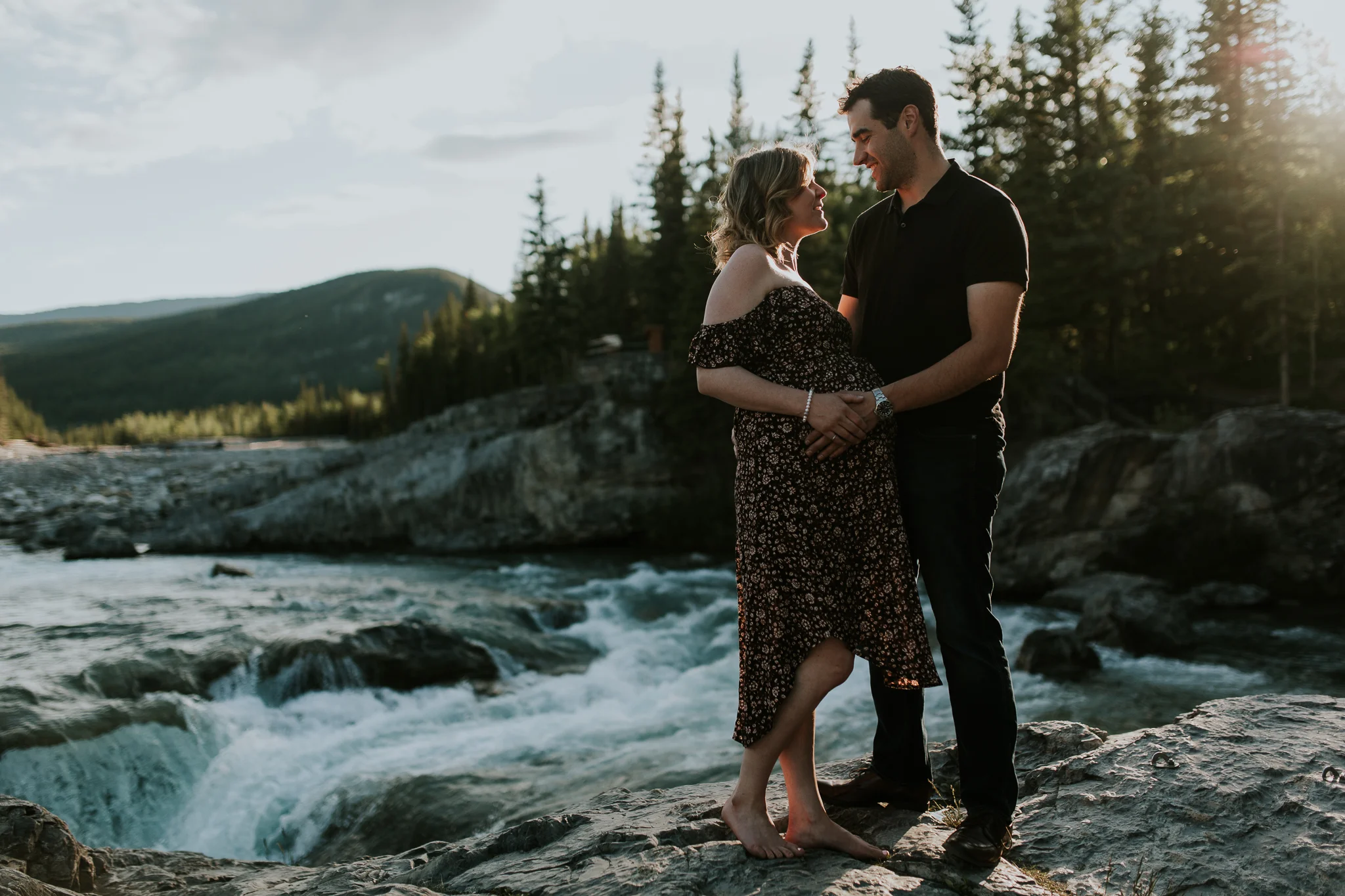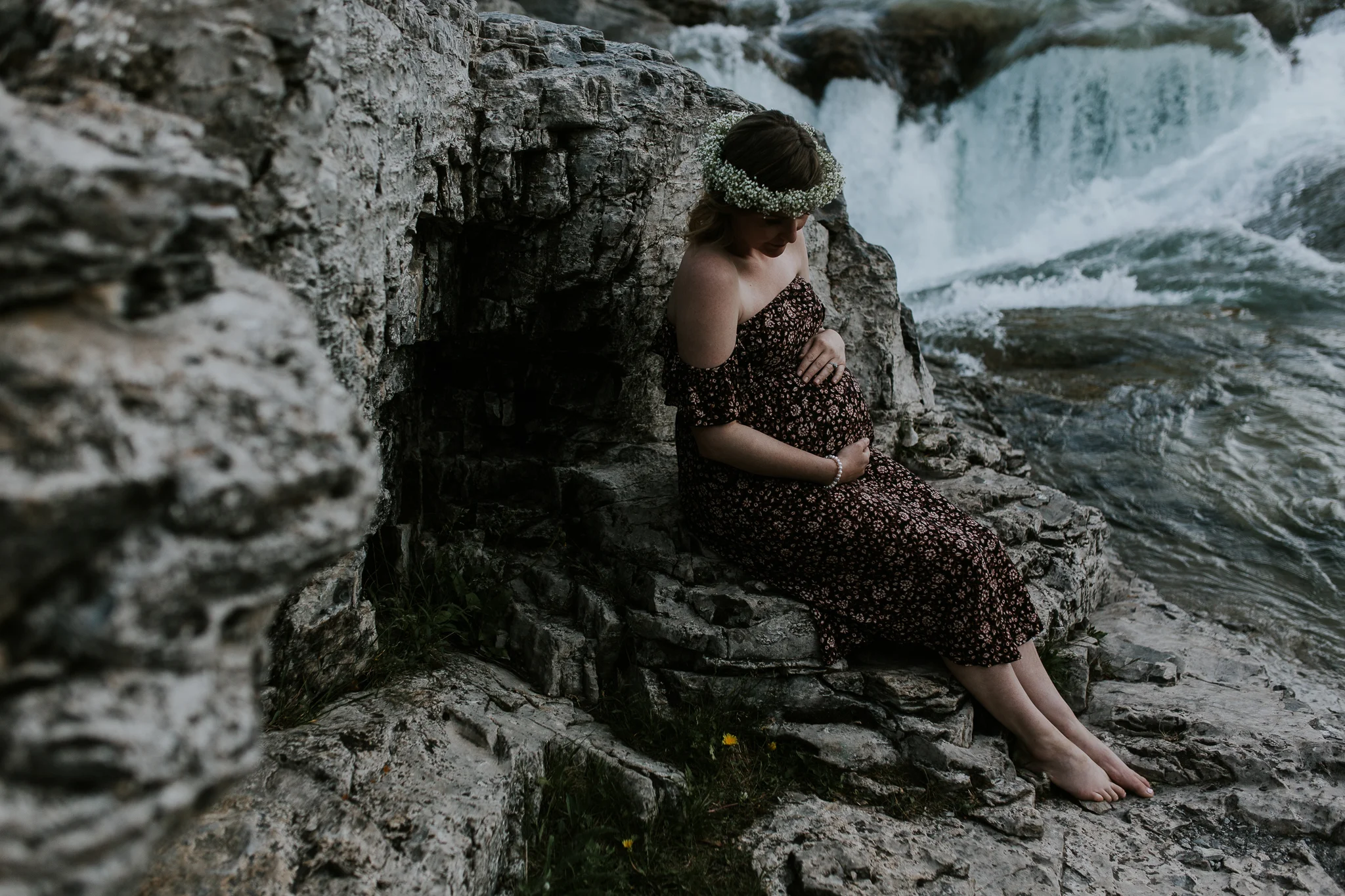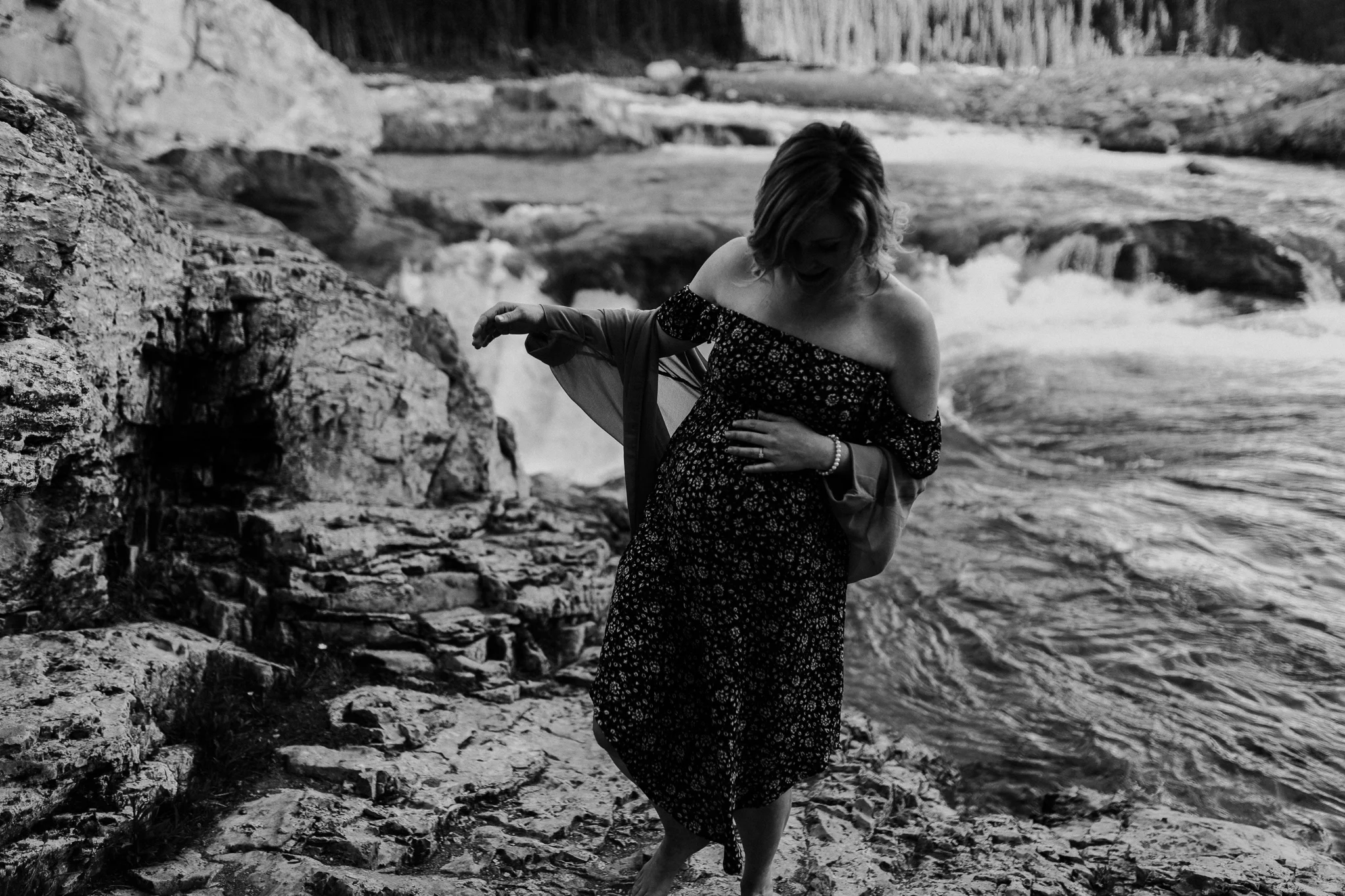 I really lucked out when I connected with Chelsea and her family. When they contacted me about a maternity shoot they were pretty open to my ideas so I tried to think of something that was a little out of the ordinary for a Calgary maternity session. I have a thing for waterfalls (doesn't everyone?) so I suggested we check out Elbow Falls in Kananaskis as it is only about 45 minutes outside of the city. It feels like a million miles away from the chaos though and has definitely become one of my go-to "escape from the city" spots. I've been wanting to do a session here for a while now so I was stoked to discover that Chelsea was up for anything! She didn't have any hesitations when I asked if she would go stand on the edge of the rock overhanging the falls. Even I thought I was a little bit crazy for asking that. But I think the shots we got were worth a little bit of off-roading adventuring! If you have any secret or not-so-secret favourite spots like this near Calgary, leave them in the comments below so I can check them out!