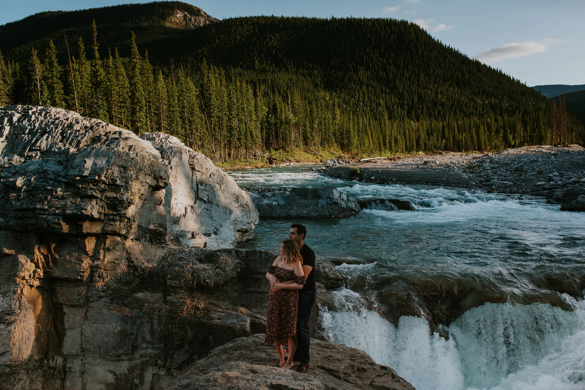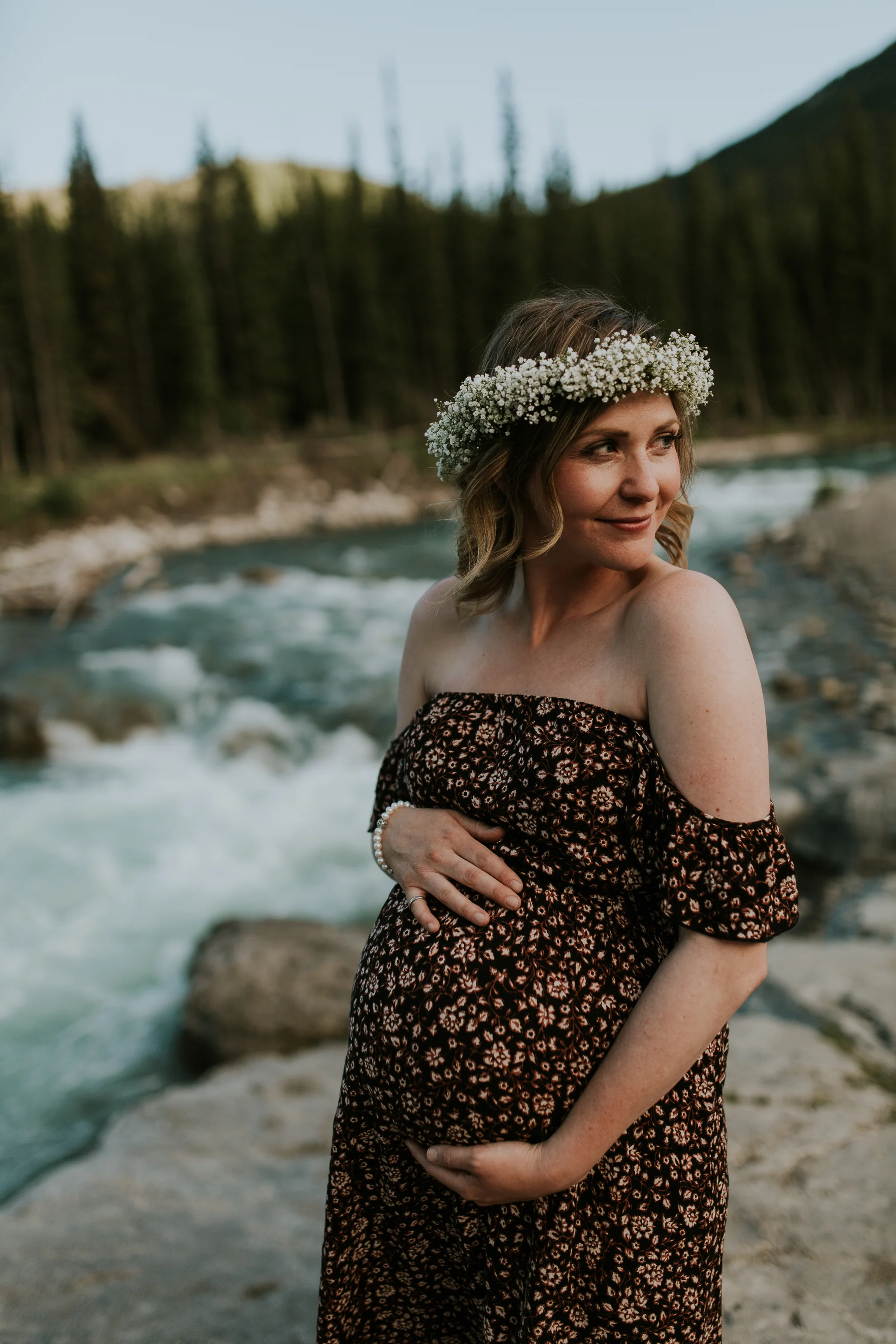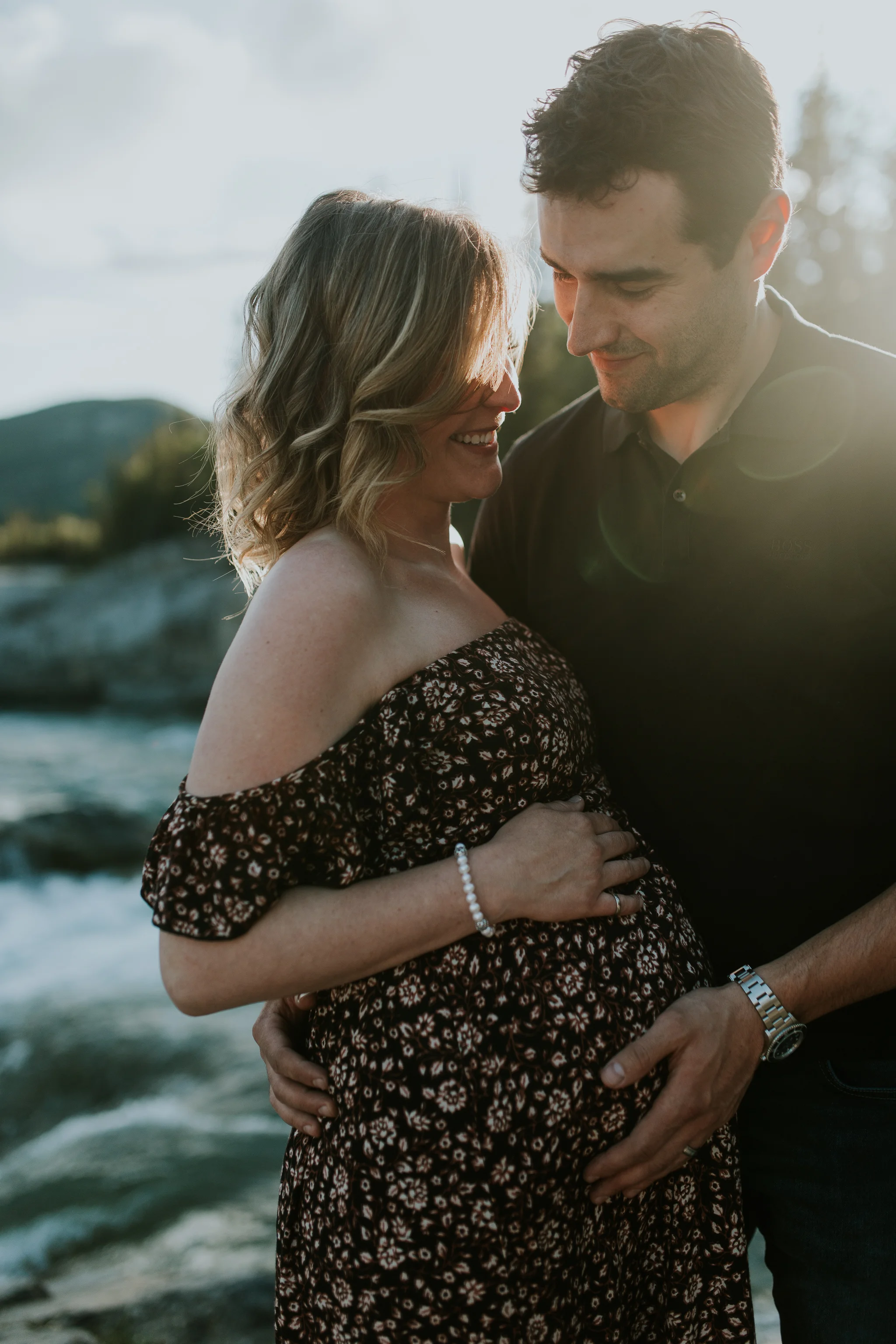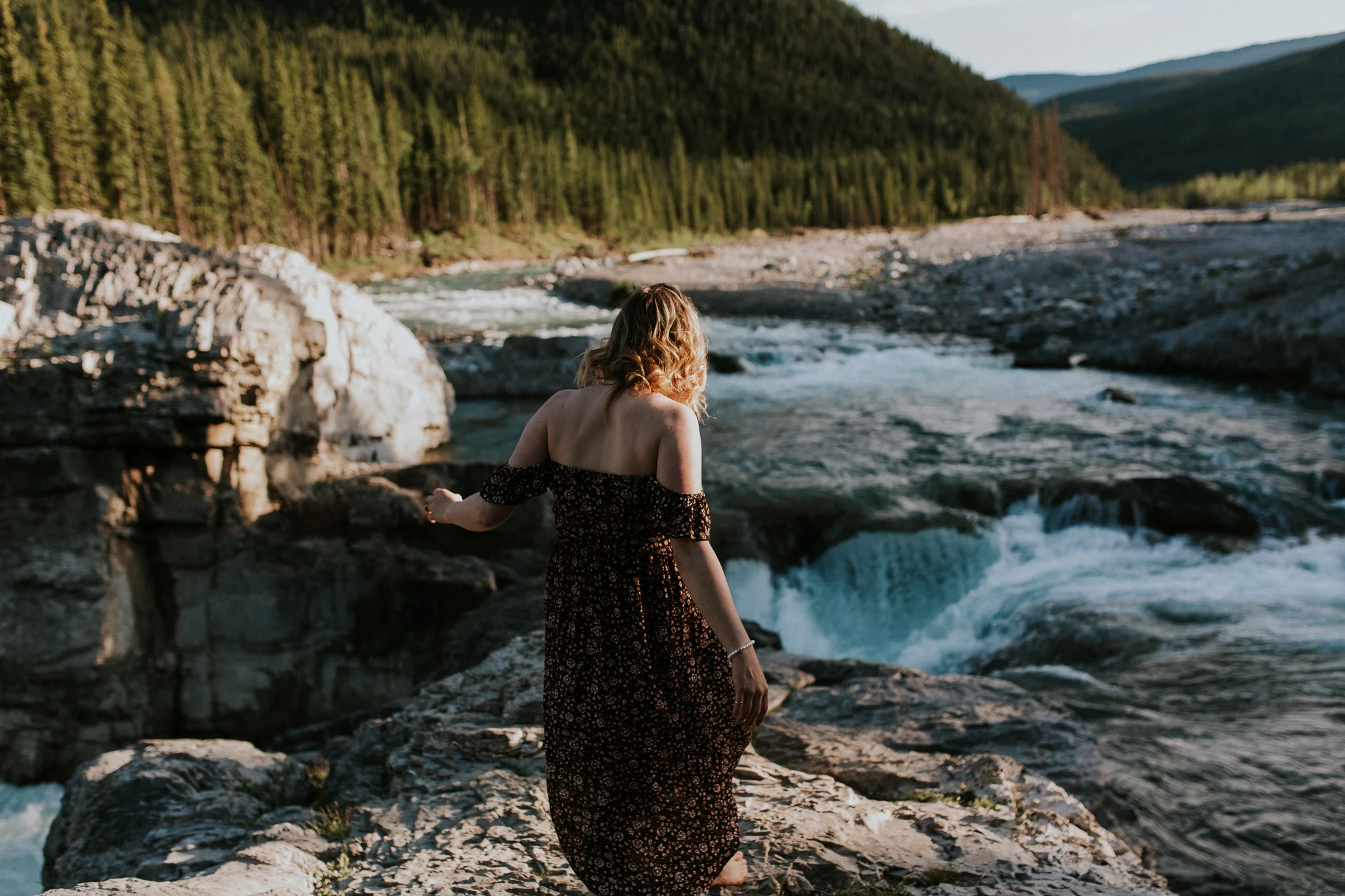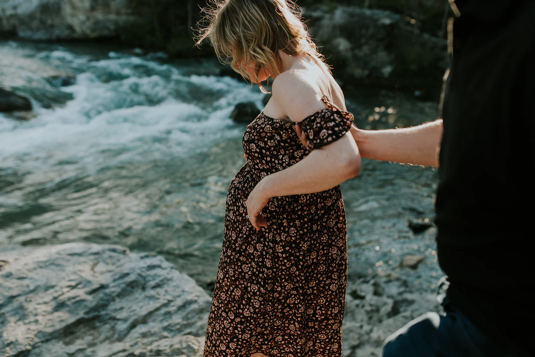 I really lucked out when I connected with Chelsea and her family. When they contacted me about a maternity shoot they were pretty open to my ideas so I tried to think of something that was a little out of the ordinary for a Calgary maternity session. I have a thing for waterfalls (doesn't everyone?) so I suggested we check out Elbow Falls in Kananaskis as it is only about 45 minutes outside of the city. It feels like a million miles away from the chaos though and has definitely become one of my go-to "escape from the city" spots. I've been wanting to do a session here for a while now so I was stoked to discover that Chelsea was up for anything! She didn't have any hesitations when I asked if she would go stand on the edge of the rock overhanging the falls. Even I thought I was a little bit crazy for asking that. But I think the shots we got were worth a little bit of off-roading adventuring! If you have any secret or not-so-secret favourite spots like this near Calgary, leave them in the comments below so I can check them out!