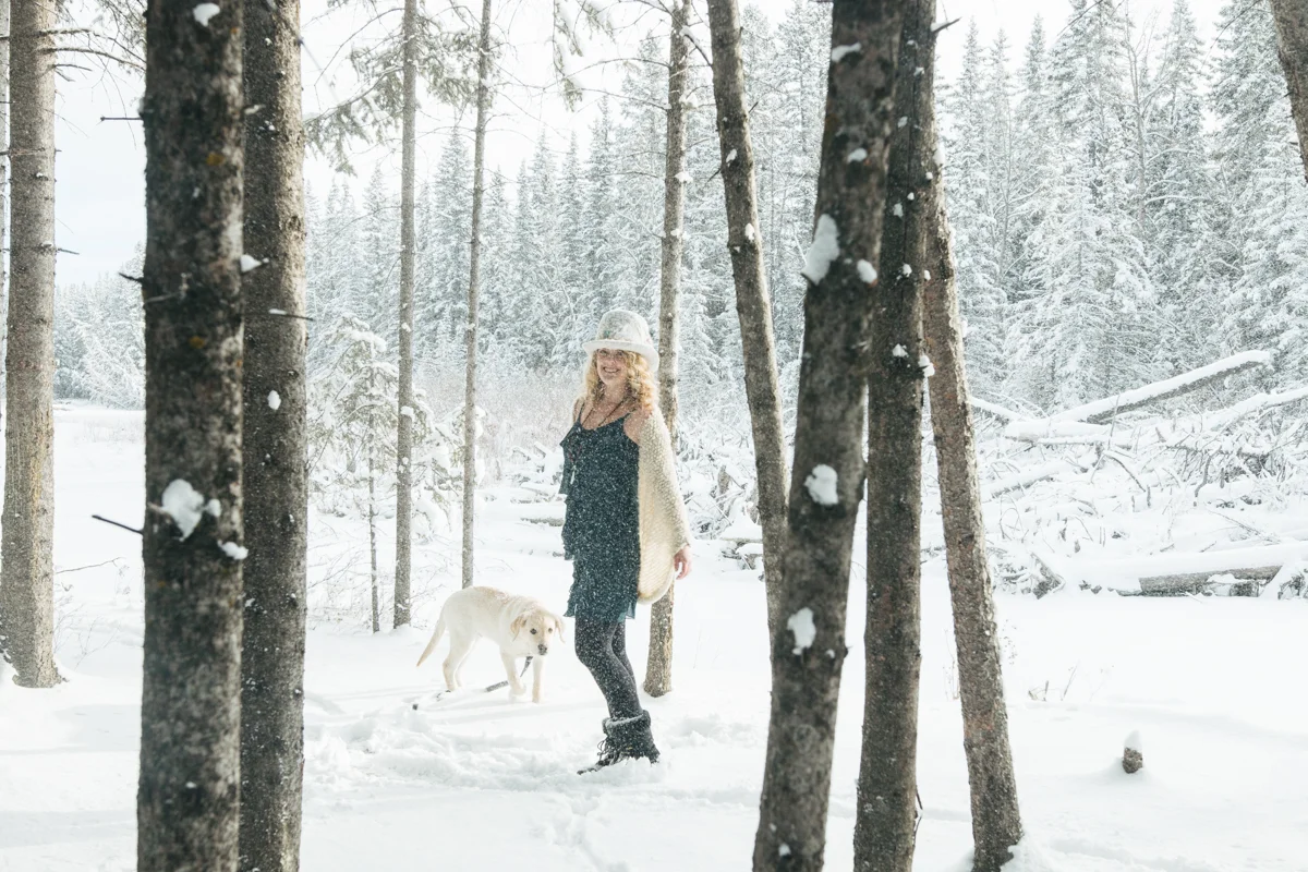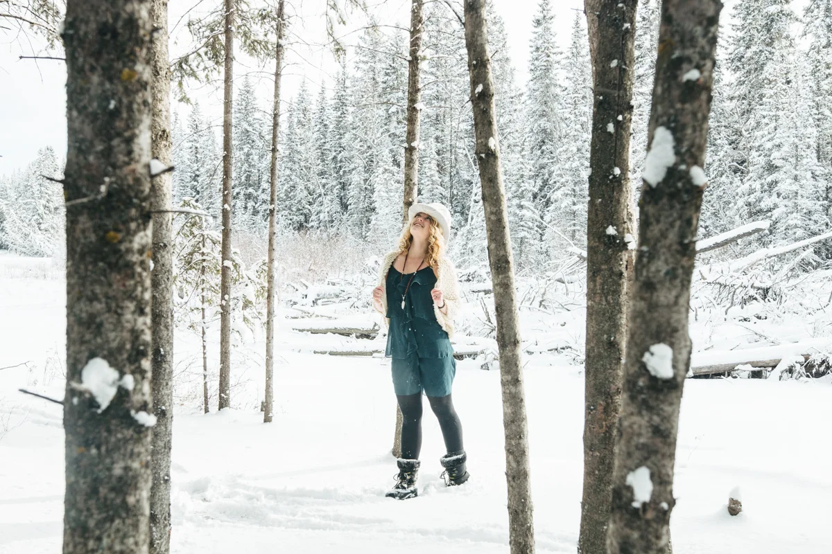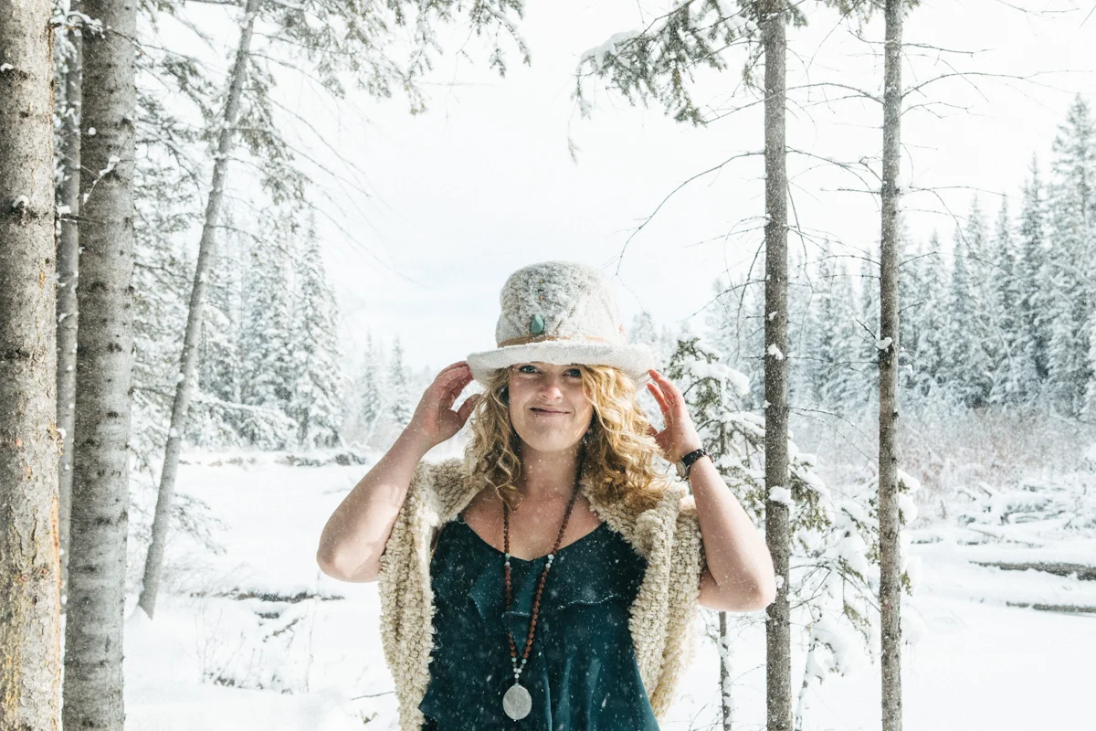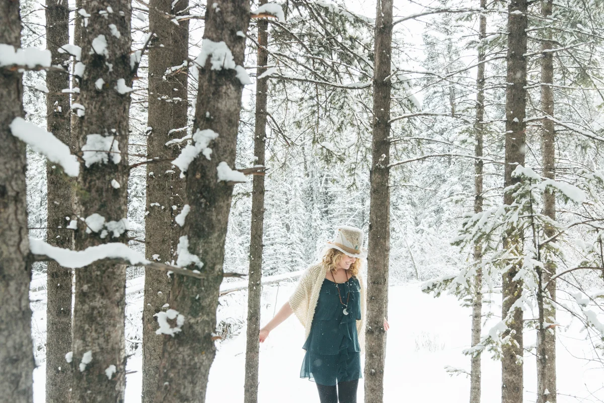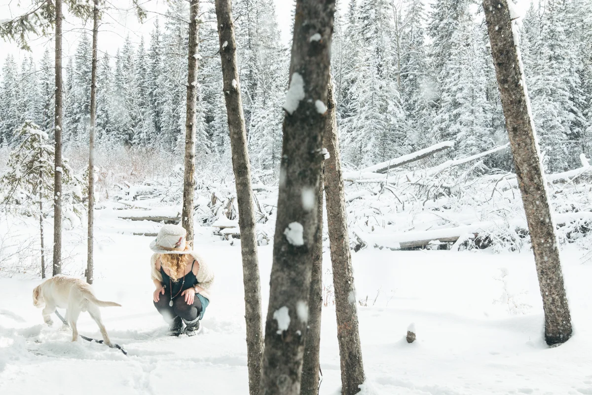Every now and again I like to get in front of the lens. I think that being behind the lens too much can start to separate you from your subject and its nice to remember what it feels like being the one photographed. I also like having photos of myself sometimes! ;) My sister was nice enough to take some of these photos featuring my friend Lex's amazing top hat she created for me called "The Eye". I was waiting for fresh snow which we hadn't seen in weeks and yesterday was perfect! Hudson came along of course and scouted out the locations for us, dragging his leash behind him the whole time. I still managed to get a couple of shots of my sister too, modelling a large tree branch we found... haha. I'm pretty happy the three of us are spending so much time together! <3