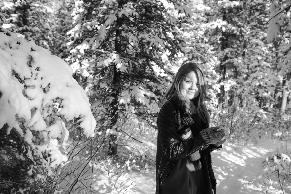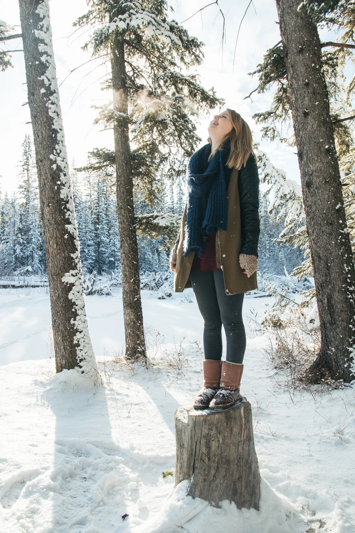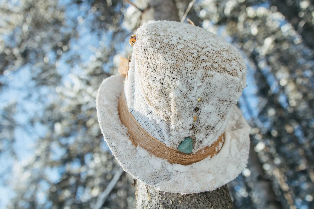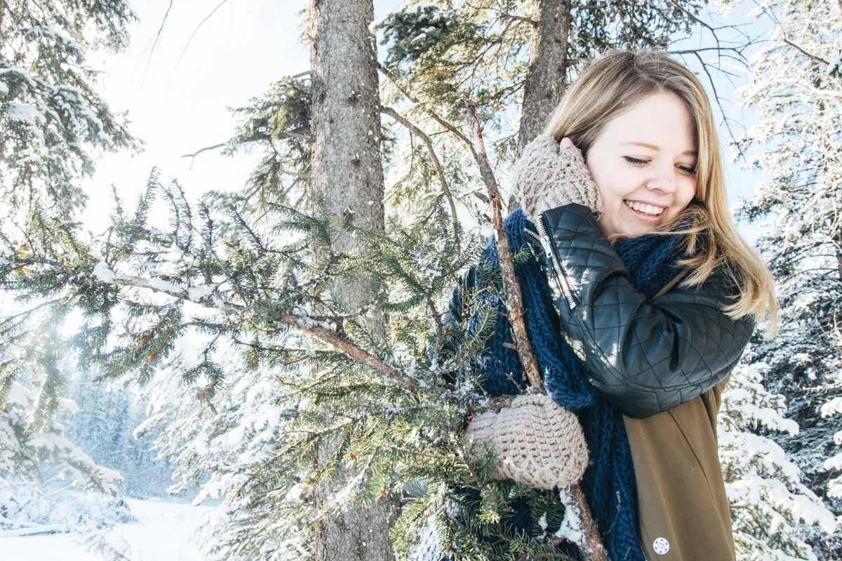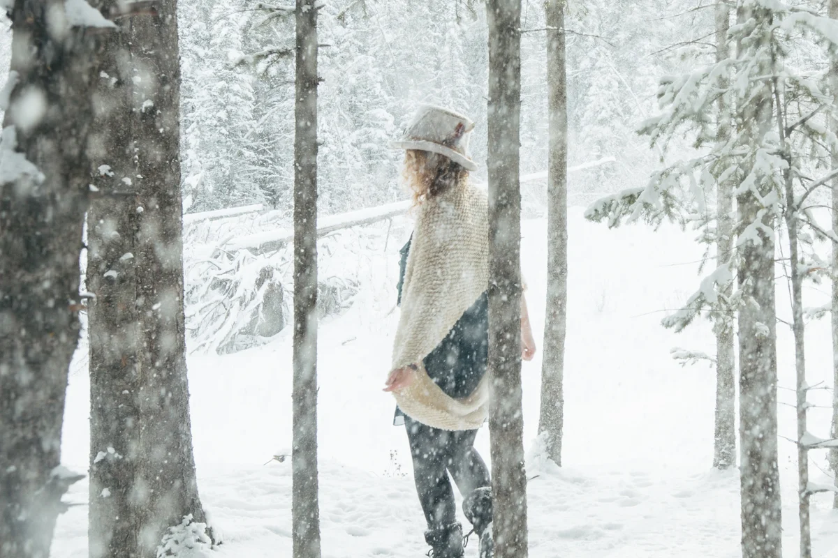 Every now and again I like to get in front of the lens. I think that being behind the lens too much can start to separate you from your subject and its nice to remember what it feels like being the one photographed. I also like having photos of myself sometimes! ;) My sister was nice enough to take some of these photos featuring my friend Lex's amazing top hat she created for me called "The Eye". I was waiting for fresh snow which we hadn't seen in weeks and yesterday was perfect! Hudson came along of course and scouted out the locations for us, dragging his leash behind him the whole time. I still managed to get a couple of shots of my sister too, modelling a large tree branch we found... haha. I'm pretty happy the three of us are spending so much time together! <3