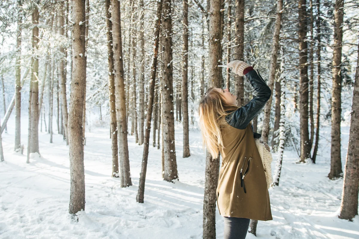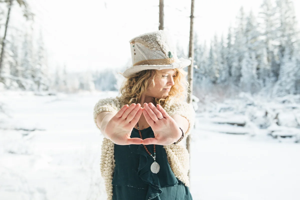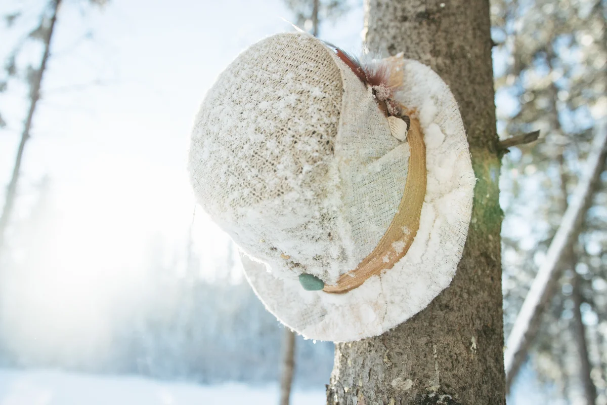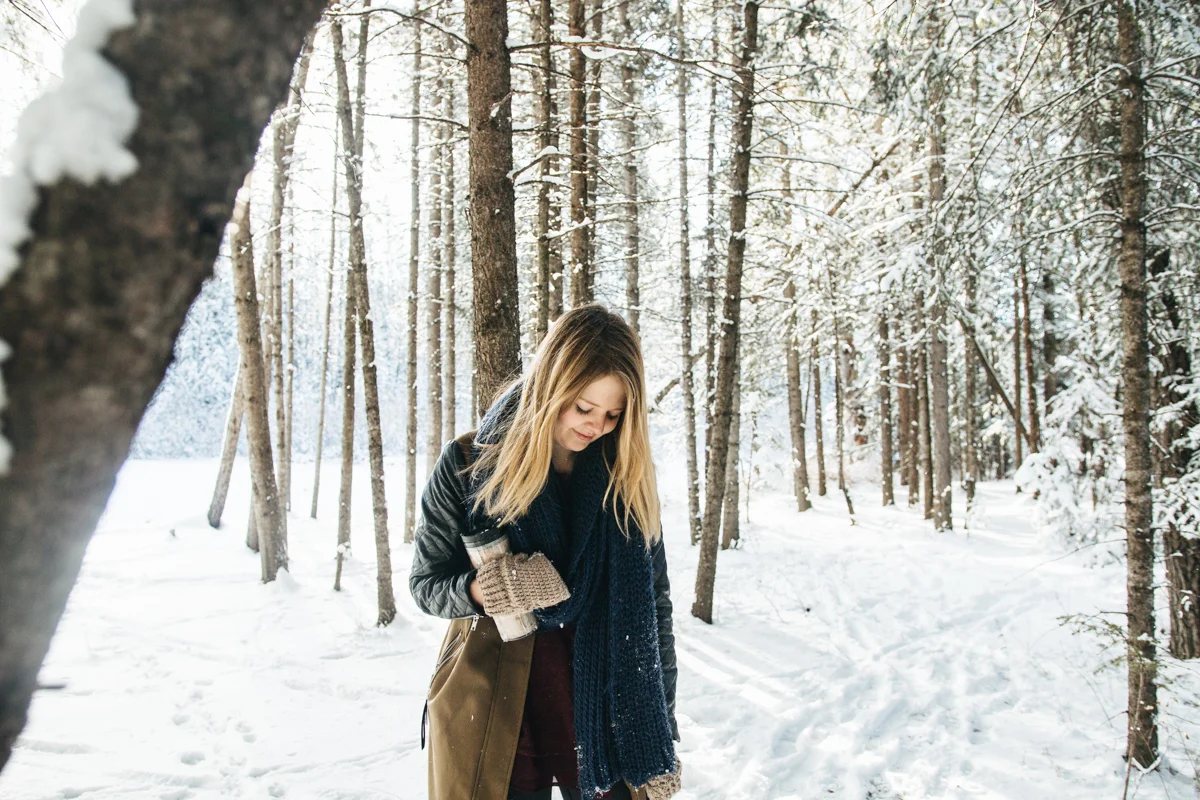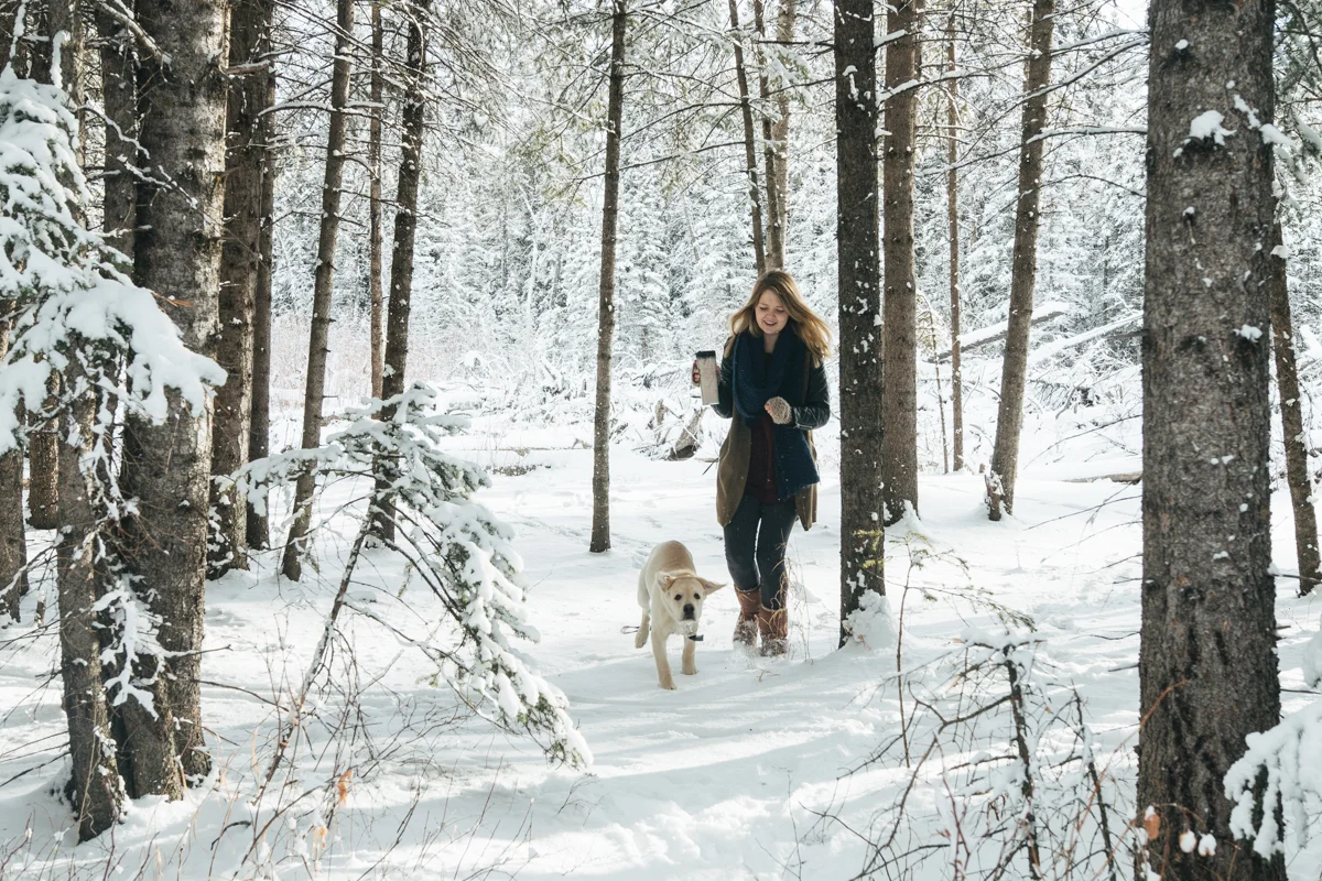 Every now and again I like to get in front of the lens. I think that being behind the lens too much can start to separate you from your subject and its nice to remember what it feels like being the one photographed. I also like having photos of myself sometimes! ;) My sister was nice enough to take some of these photos featuring my friend Lex's amazing top hat she created for me called "The Eye". I was waiting for fresh snow which we hadn't seen in weeks and yesterday was perfect! Hudson came along of course and scouted out the locations for us, dragging his leash behind him the whole time. I still managed to get a couple of shots of my sister too, modelling a large tree branch we found... haha. I'm pretty happy the three of us are spending so much time together! <3